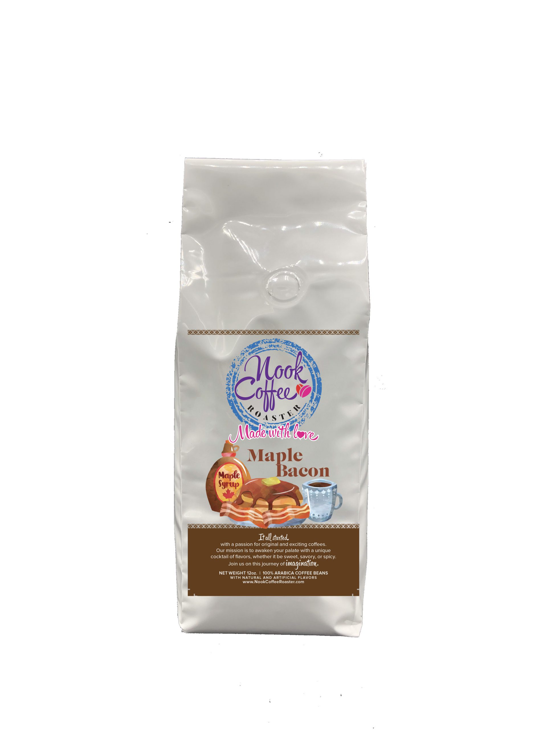 Our Maple Bacon Roast is nothing more than bacon that has been kissed with sweet maple syrup. Its salty and sweet, and a delicious treat. Its great for those snowy days up on the mountain range.